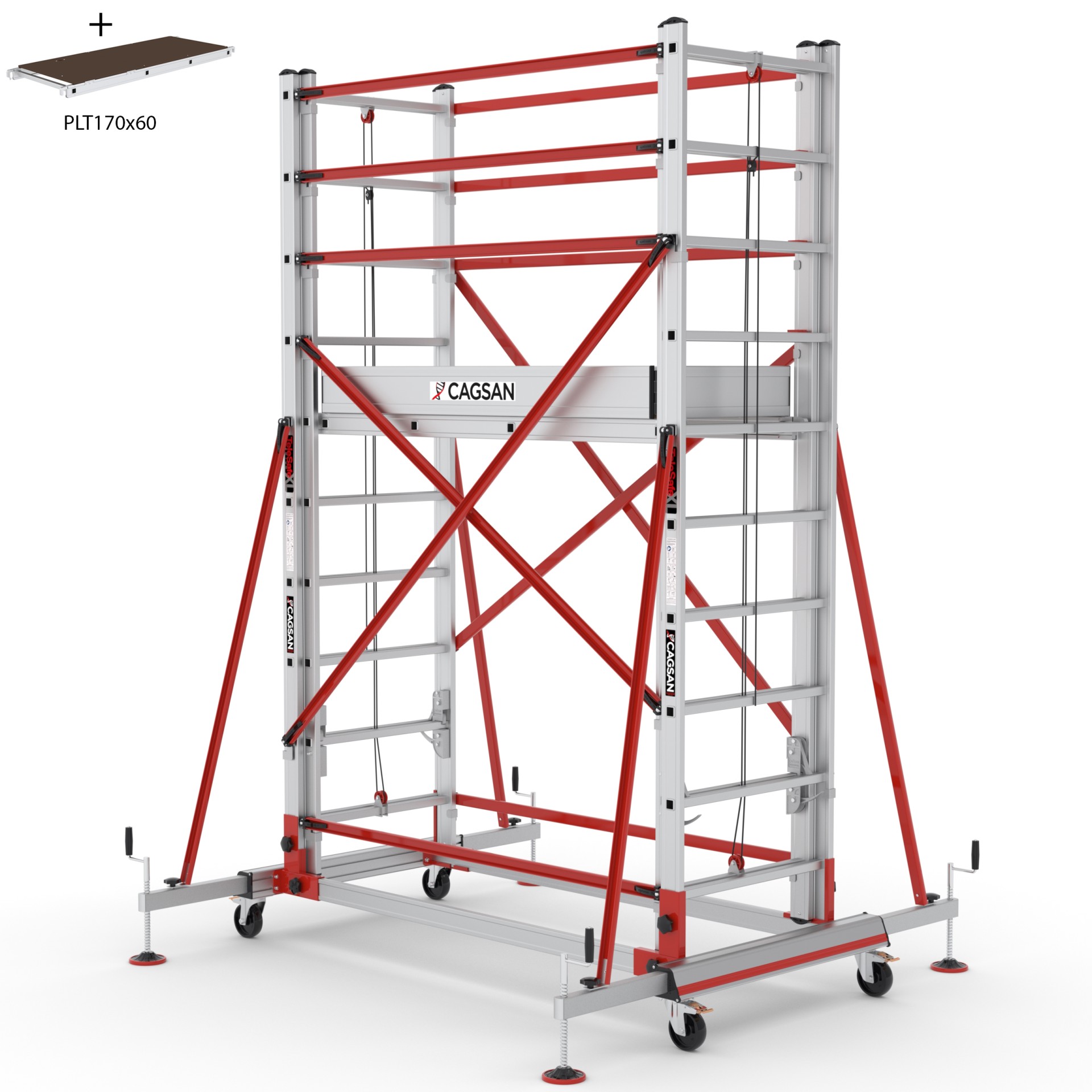 TeleSafe XLN-Premium İki Parça Alüminyum iskeleler, tüm dünyada yürürlüğe girmiş olan EN 1004-1:2020 standardina sahip olan iskele gruplarmızdandır. Bu iskeleler, özel mafsal sistemi sayesinde kolaylıkla boyu ayarlanabilir, farklı yüksekliklerde çalışma imkanı sağlar ve kullanım esnekliği sunar. Sağlam alüminyum konstrüksiyon ve çelik denge ayaklarıyla güçlendirilmiş bir yapı oluşturur, böylece güvenli ve dayanıklı bir kullanım sağlar. Alüminyum profilden yapılmış çapraz ve yatay bağlantılar, iskele ana merdivenlerini birbirine bağlar.