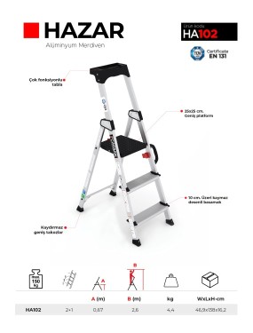 > Çağsan 2+1 Basamaklı Hazar Alüminyum Merdiven (HA102)