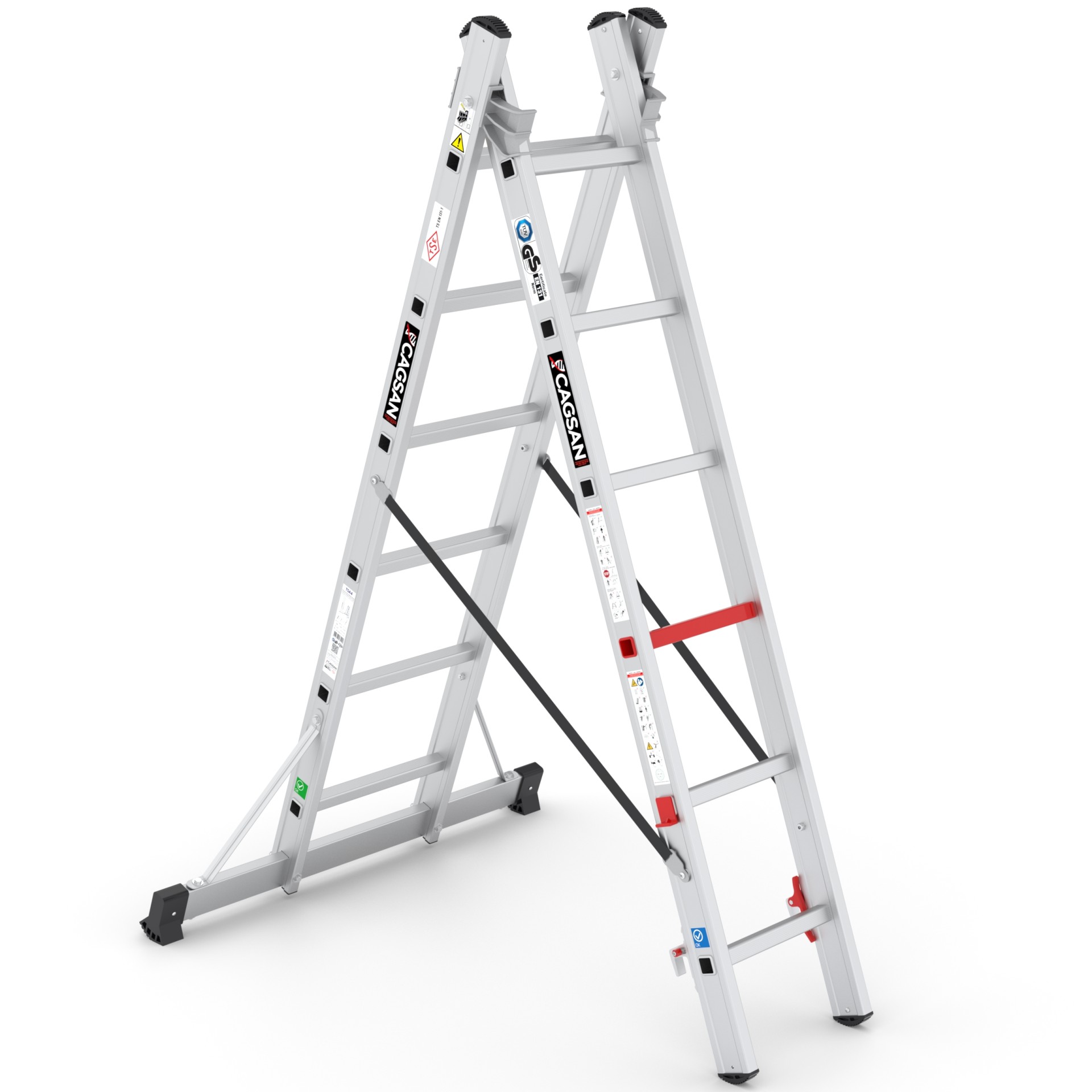 DUOCOMBI - İki Parçalı Çok Amaçlı Merdivenler, çalışma alanınıza bağlı olarak farklı kullanım seçenekleri sunan esnek bir merdiven çözümüdür. Hem duvara dayamalı hem de A tipi açılır şekilde hiçbir yere dayamadan kullanma imkanı sağlayarak işlerinizi kolaylaştırır ve çalışma verimliliğinizi artırır.