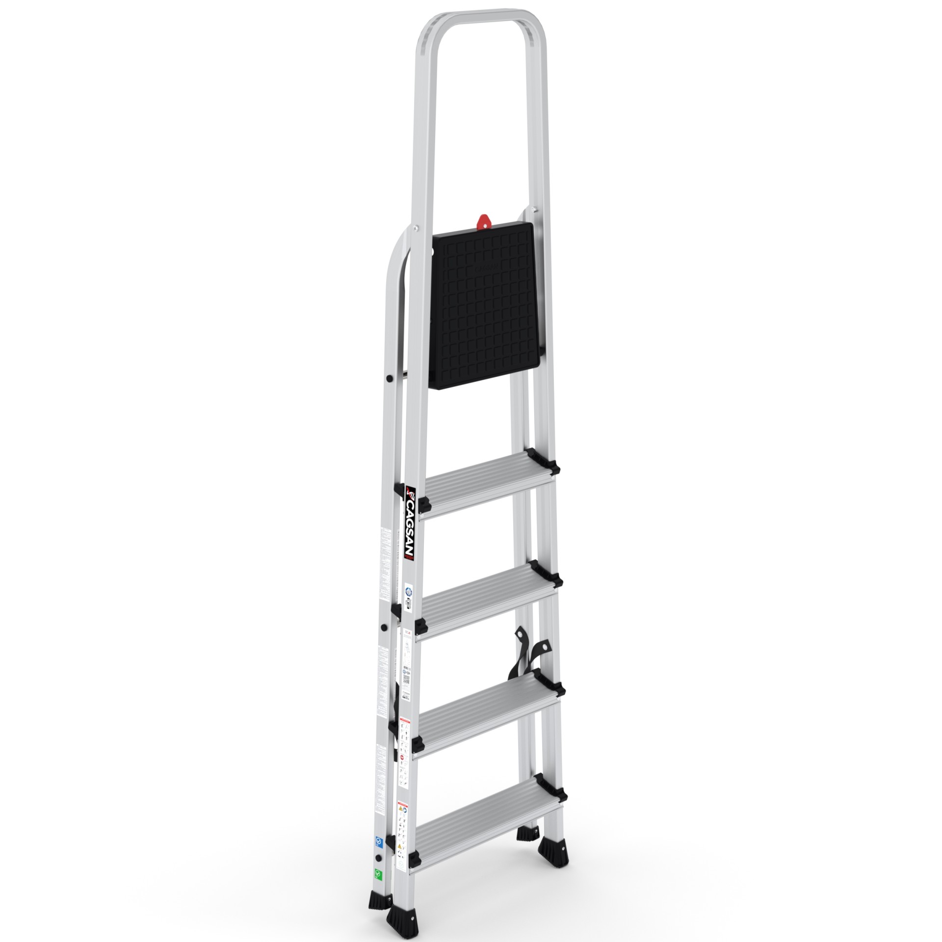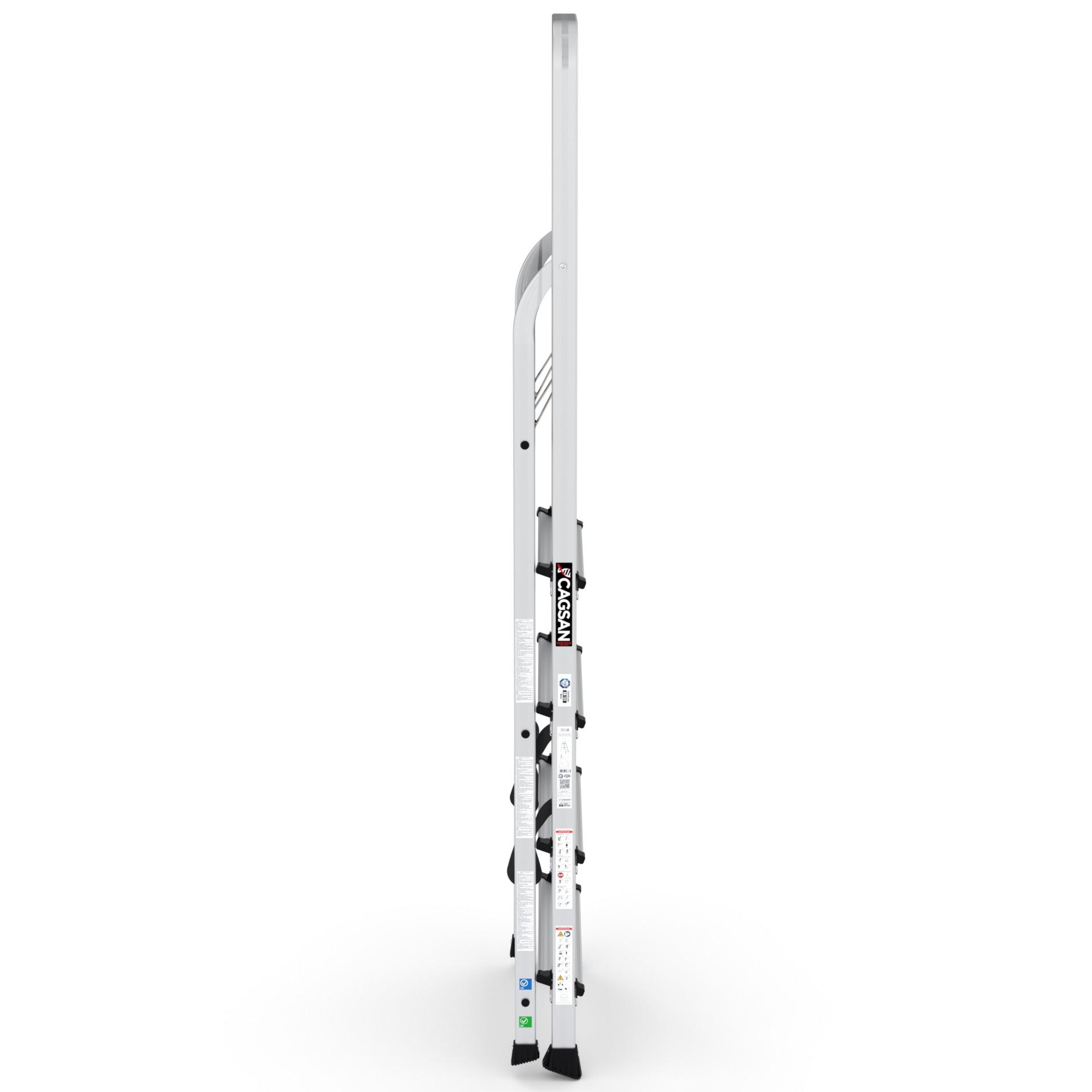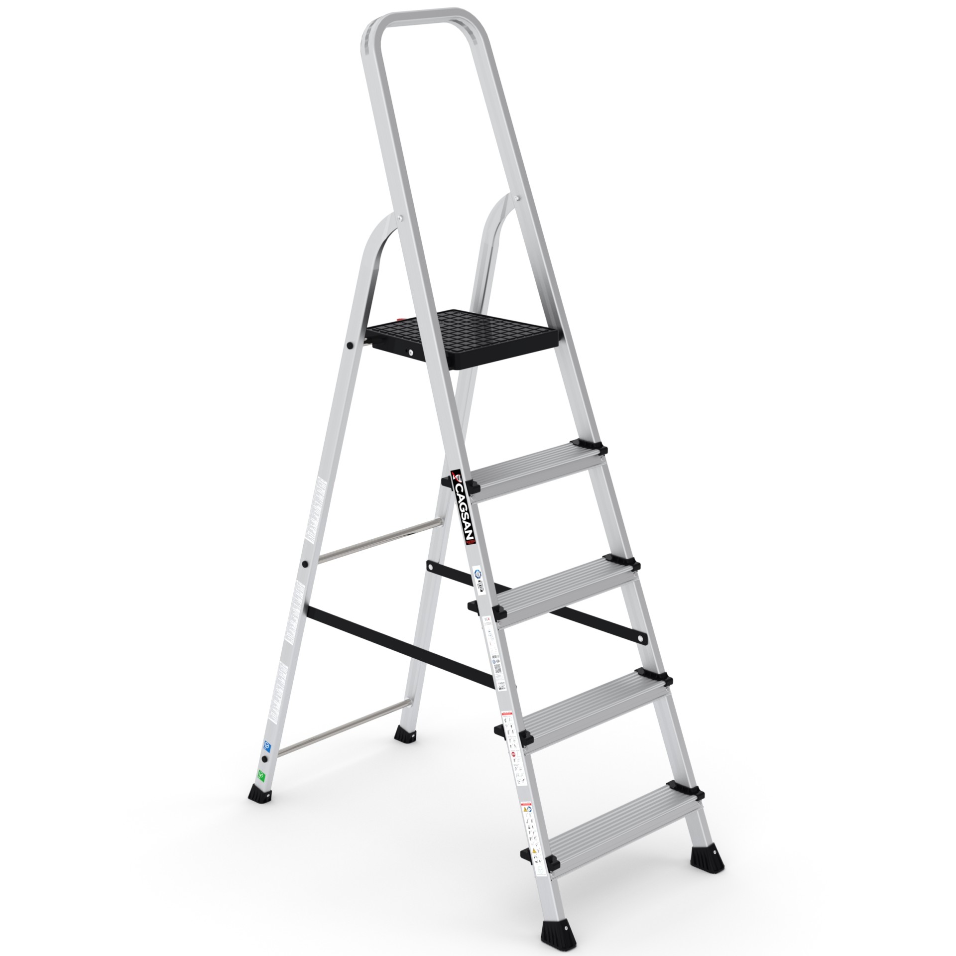 BERGAMA - Tablalı Merdivenler, ev, hobi ve ofis kullanımı için ideal bir seçenektir. 60 cm. tabla yüksekliğinden başlayarak 148 cm. tabla yüksekliğine kadar farklı modelleri bulunmaktadır. Merdivenlerimiz özel alaşım alüminyum malzemeden üretilmiştir, bu sayede hafif ve sağlam bir yapıya sahiptir. Hem taşıması kolaydır, hem de uzun ömürlü bir kullanım sunar. Güvenliğinizi ön planda tutarak tasarlanmıştır.
